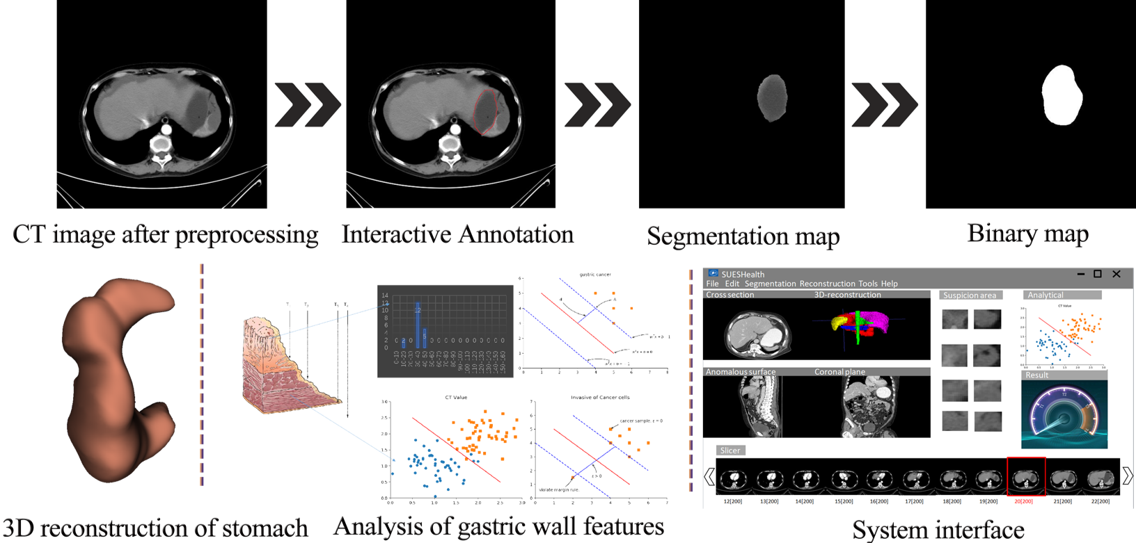 The CT images of patients were sent into the pre-trained machine learning model after a series of processing to give information such as whether the physical examination subject suffered from gastric cancer, accurately distinguish the pathological stage of gastric cancer and so on, and achieve T-stage diagnosis of gastric cancer. The project won the 2nd prize of the “The China Graduate Electronics Design Contest” and the 3rd prize of the “Smart City Competition”