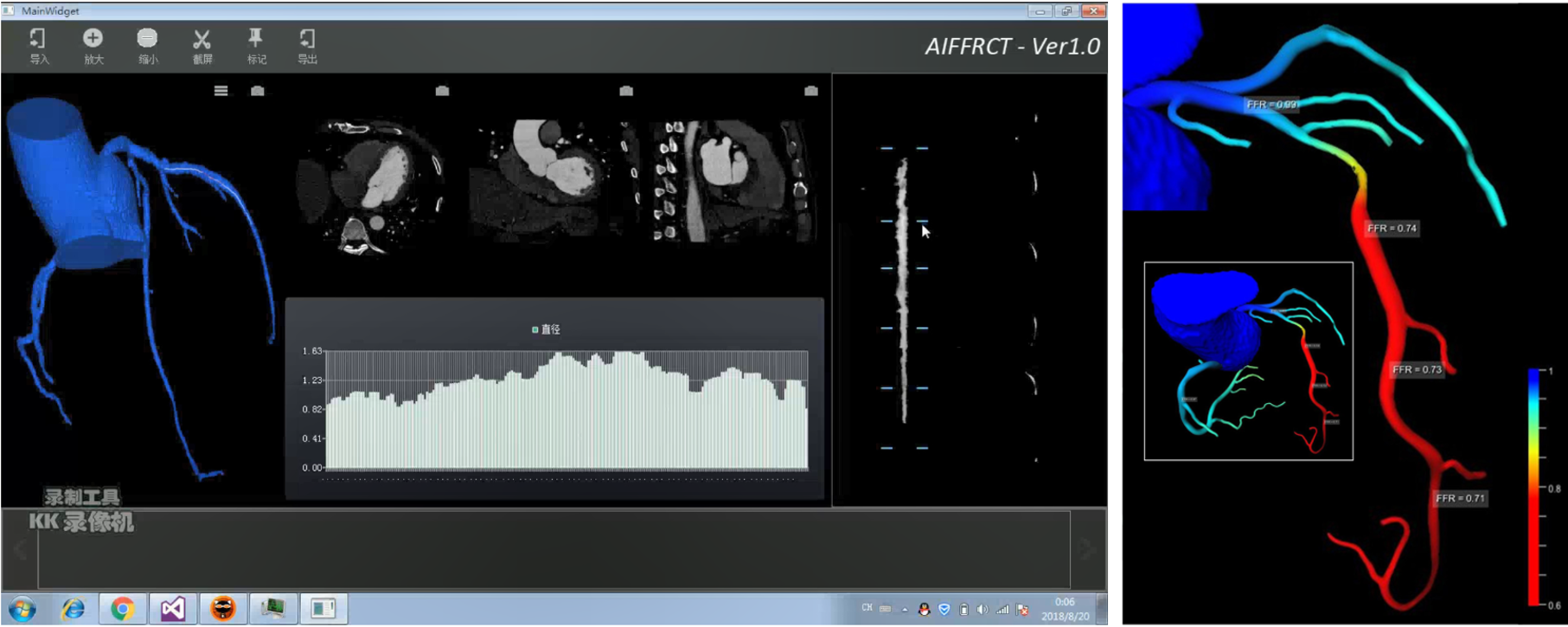 Perform image segmentation, three-dimensional reconstruction, and blood vessel center line extraction on the CT images in the physical examination, and diagnose whether the examination has coronary heart disease by calculating the value of FFRCT.
